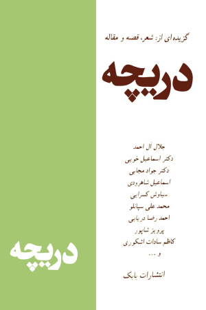 دریچه کتابی است که اسامی برخی نامداران عرصه فرهنگ و هنر دهه های 1340 و 50 را بر جلد بیپیرایه و دو رنگ خود دارد و مطالعه مقالات دست اولی را به خواننده نوید میدهد. اما انتشارات بابک در مقدمۀ کوتاه خود با عنوان «حرفهای ناشر» این انتظار را از وی میستاند: