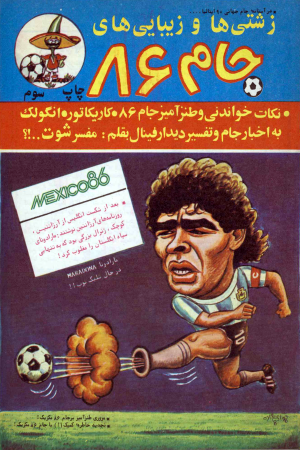 بنابراین در آن فضای تلخ بعد از چند ماه بیکاری، و خانهنشینی به این فکر افتادم که بعد از ده سال کار کردن برای دیگران، برای خودم و بدونآقا بالاسر کار کنم. گرچه کار خیلی سختی بود. آن هم با موضوعات دلخواه فوتبالی و سینمایی وتلویزیونی؛ چون از سیاست بیزار شده بودم. بنابراین شروع به انتشار این گاهنامهها کردم. اما برای هر گاهنامه باید از وزارت ارشاد مجوز میگرفتم. در بحبوحه جنگ، مسوولان ارشاد مرتب ایراد میگرفتند که الان چه موقع کشیدن میشل پلاتینی و مارادونا و این چیزهاست. من هم جواب میدادم که «هر چیزی جای خودش دارد. به هر حال در پشت جبهه هم باید مردم روحیه داشته باشند، شاد باشند و بخندند.»… با برخی از مسوولان ارشاد میشد چانه زد اما بعضیها به شدت مخالفت میکردند و شرطهای عجیب و غریب میگذاشتند. اما موفق شدم تعداد قابل توجهی از این گاهنامهها را منتشر کنم.